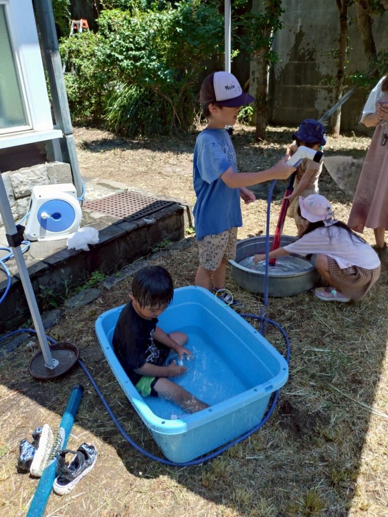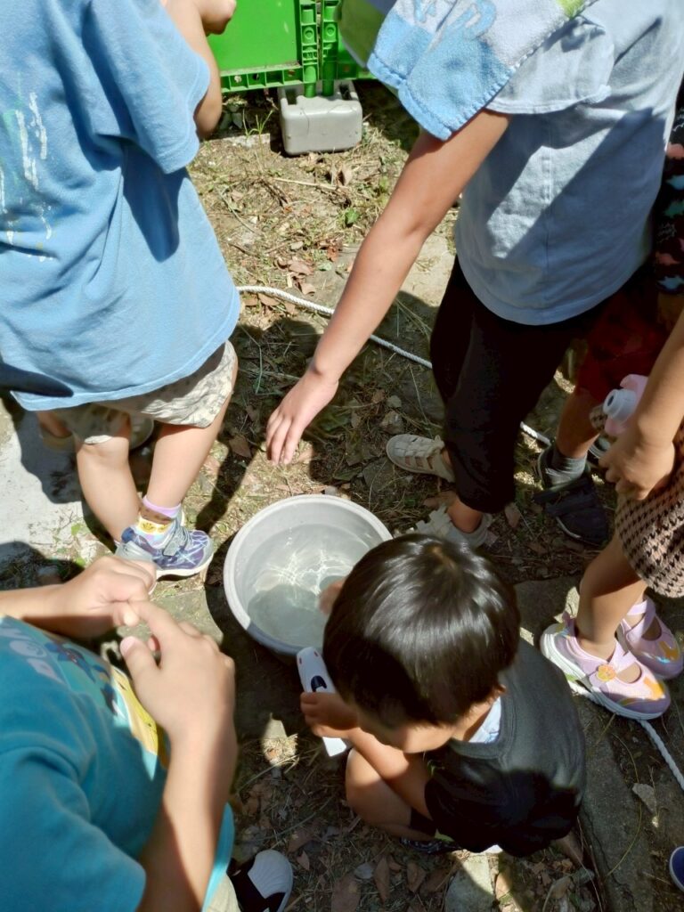 6月に調査機関に井戸水を提出し、人体に影響のないことが判断された上で子どもたちの手に触れさせています。水遊びでは水道水を使用しています。
