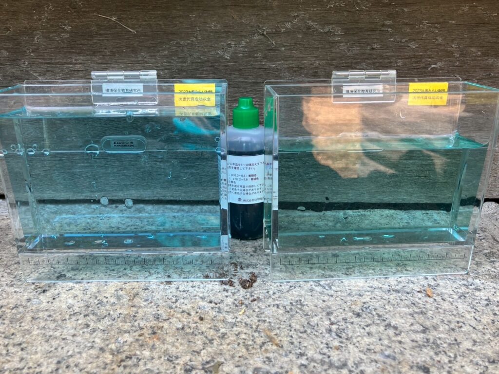 BTB溶液という薬を使って、井戸水と水道水のPh測定をしてみました