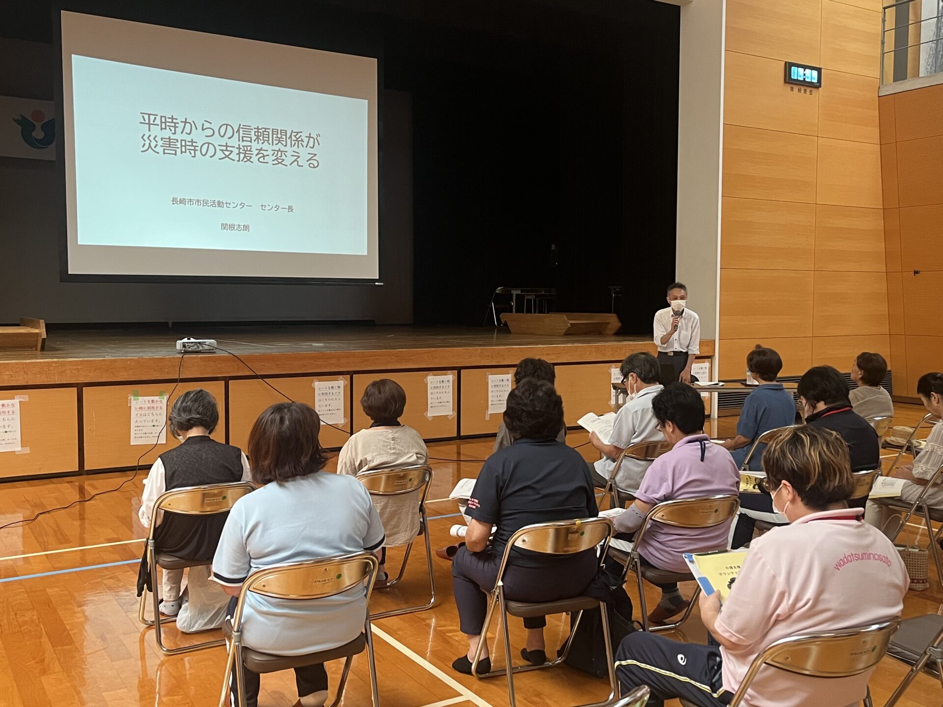 2025年8月20日(水)、平戸市紐差町の平戸市ふれあいセンターで、介護支援ボランティア講習会が開かれ、センター長の関根志朗が「平時からの信頼関係が災害時の支援を変える」と題して講話しました。