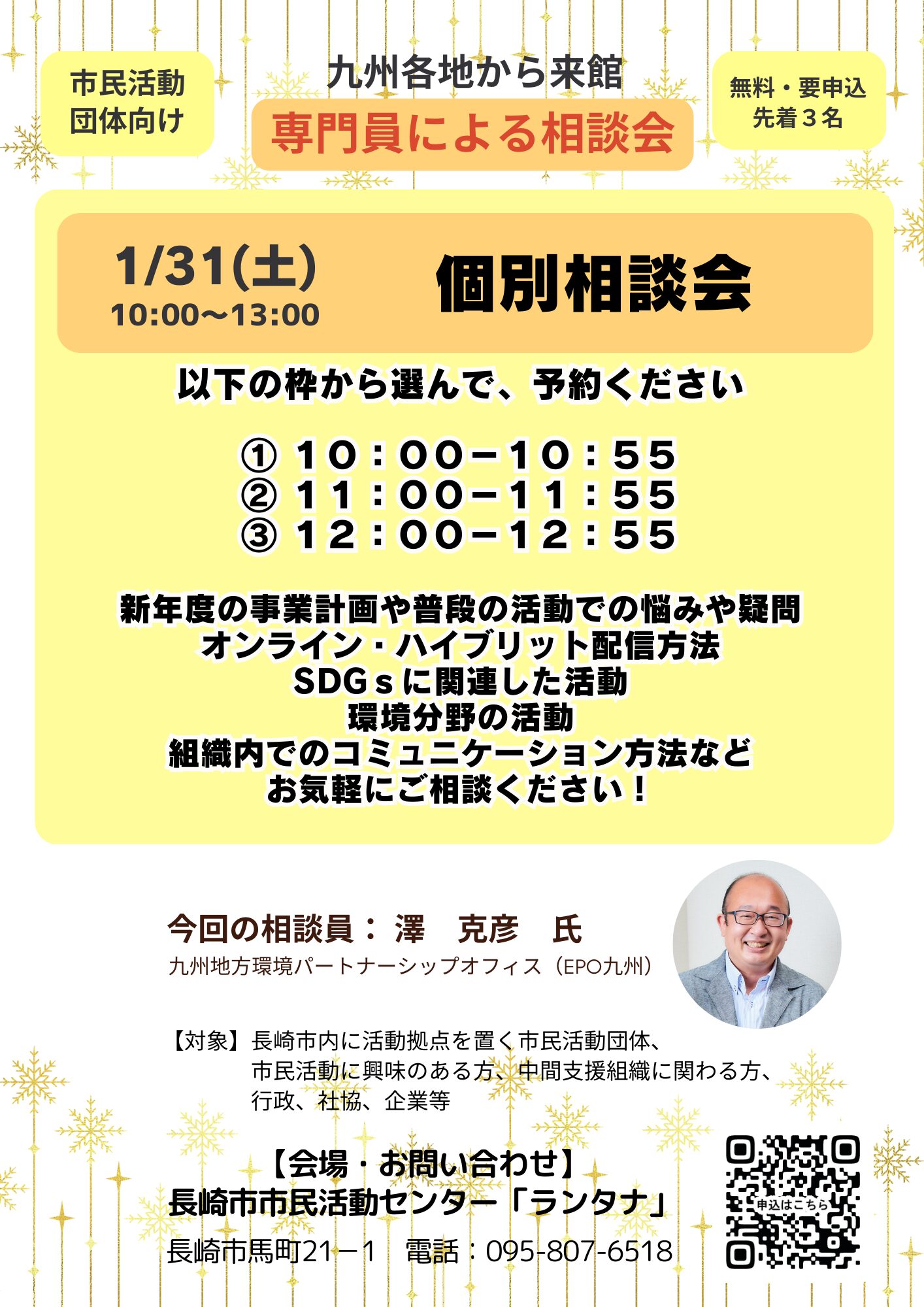 - 相談員:澤 克彦(九州地方環境パートナーシップオフィス EPO九州)