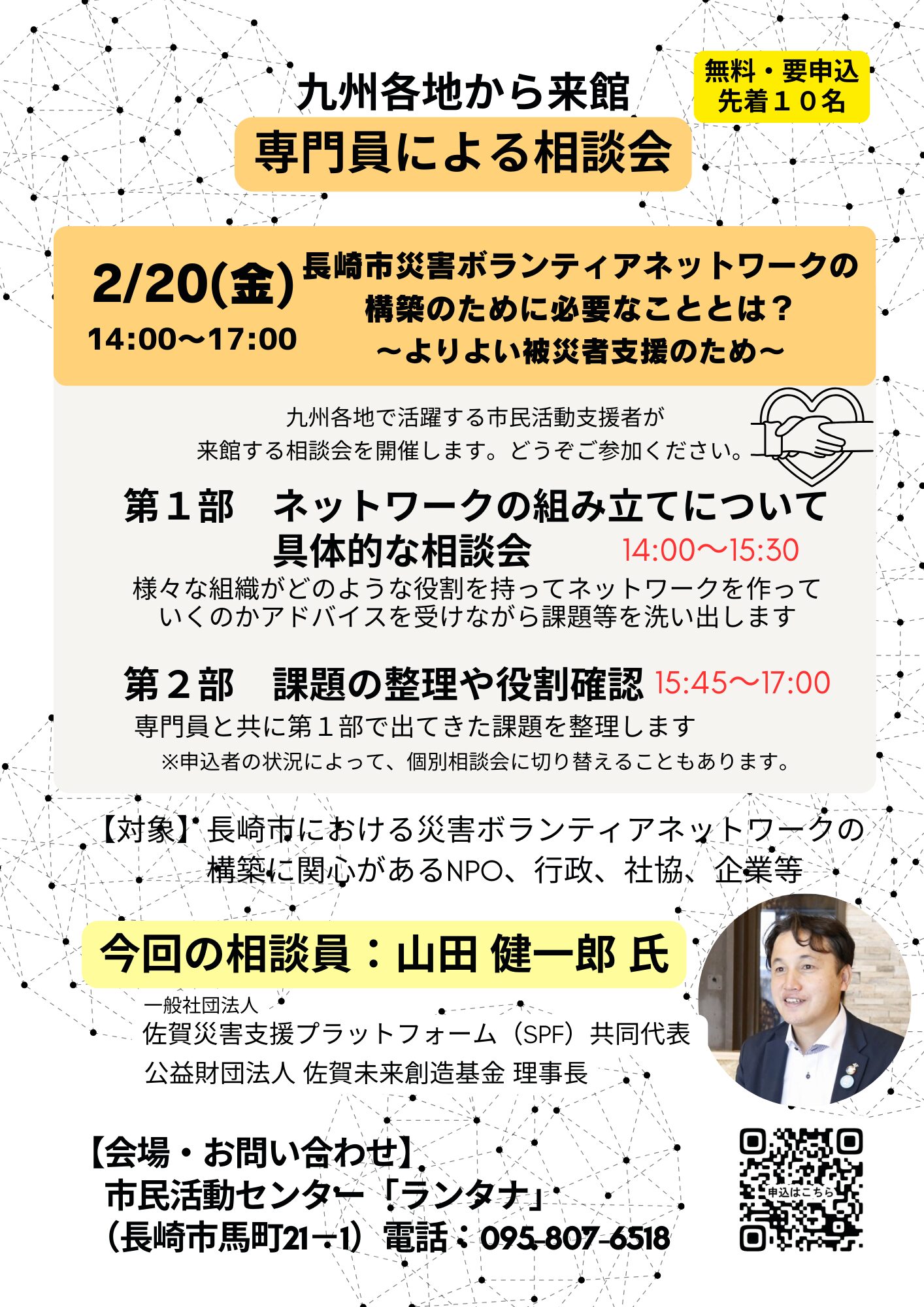 • 相談員:山田 健一郎 氏(一般社団法人 佐賀災害支援プラットフォーム 共同代表)