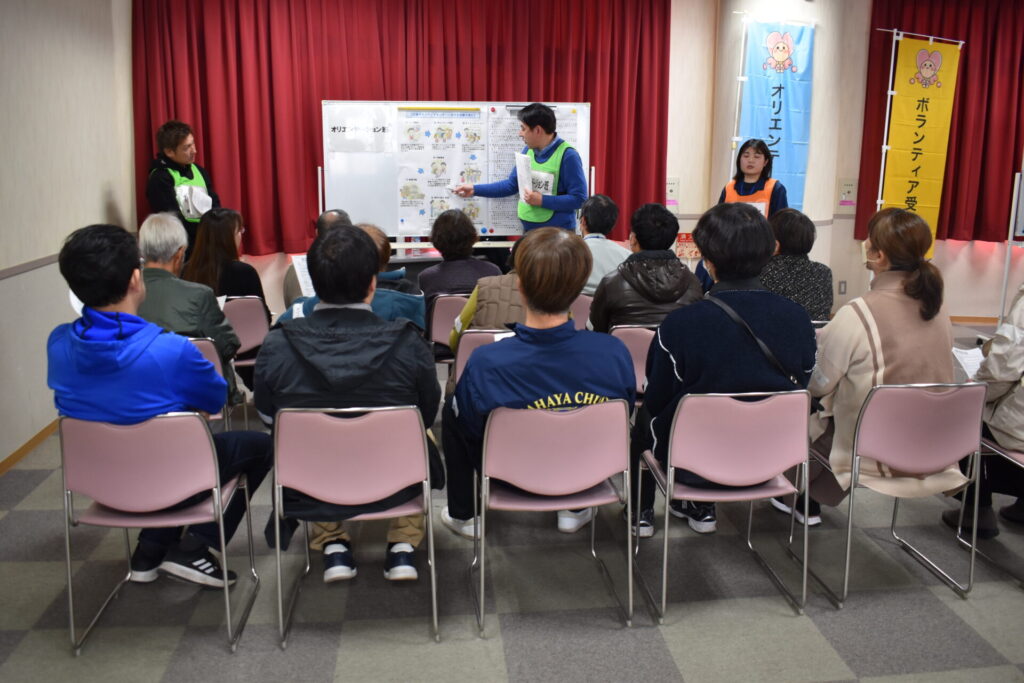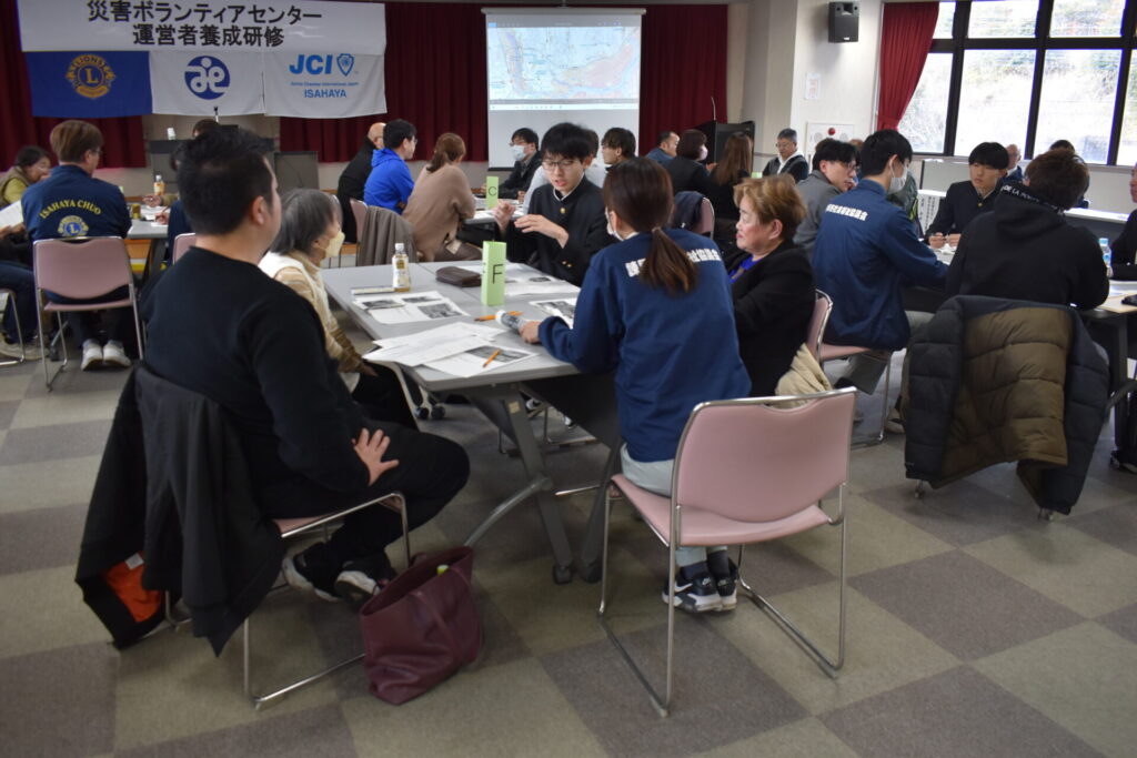 この研修は災害ボランティアセンターの運営について協定を締結している、諫早市社会福祉協議会、ライオンズクラブ国際協会337-C地区に属する諫早市内の6つのライオンズクラブ、一般社団法人諫早青年会議所(JC諫早)が協働して開催したものです。
