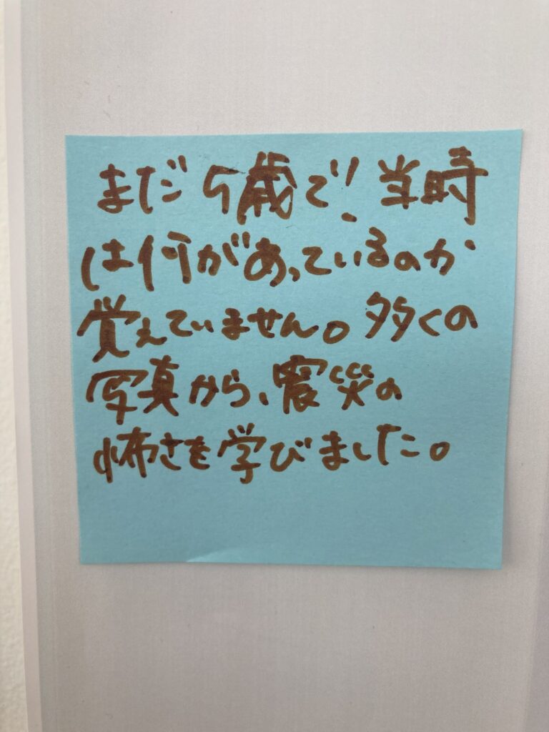 災害に遭ったことはないけれど、こうやって被災した人たちの様子を知ることで、いざという時に自分たちは助け合えるのかを考えたり、一緒にこの場にいた人たちと繋がり合うきっかけとなりました。